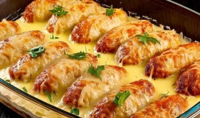 Gefüllte Kohlrouladen auf Gemüsebeet mit Käse überbacken – ein Familienklassiker, der täglich schmeckt!