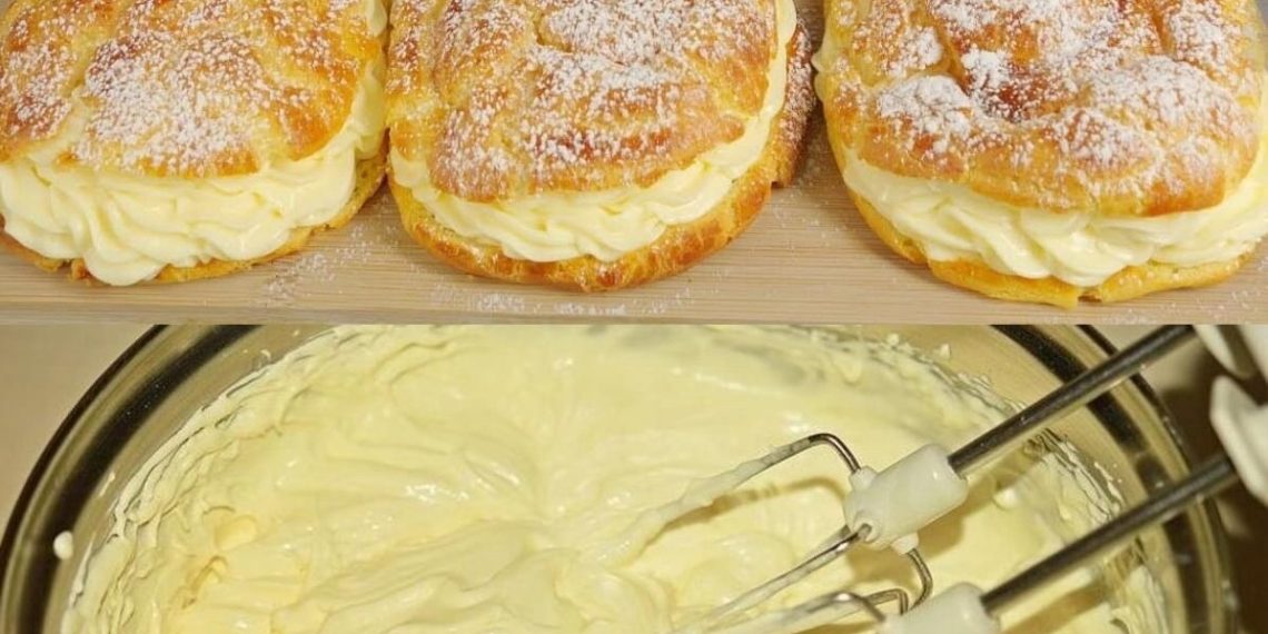 5 Die Streuseltaler waagerecht halbieren. Sahne und Soßenpulver mit dem Handrührgerät kurz auf niedrigster Stufe verrühren, dann auf höchster Stufe steif schlagen. In einen Spritzbeutel mit großer Sterntülle füllen. Vanillecreme auf die unteren Hälften der Taler spritzen. Deckel darauf setzen. Streuseltaler mit Puderzucker bestäubt servieren